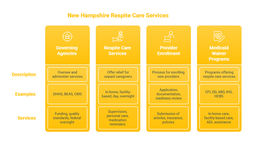 Respite Care Services in New Hampshire provide temporary relief for family caregivers of individuals with disabilities, chronic illnesses, or age-related conditions. These services allow primary caregivers to rest, attend to personal matters, or recover from caregiver fatigue while ensuring the participant’s safety and well-being. Respite Care Services are authorized under New Hampshire Medicaid Home and Community-Based Services (HCBS) Waiver programs.